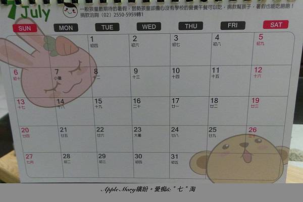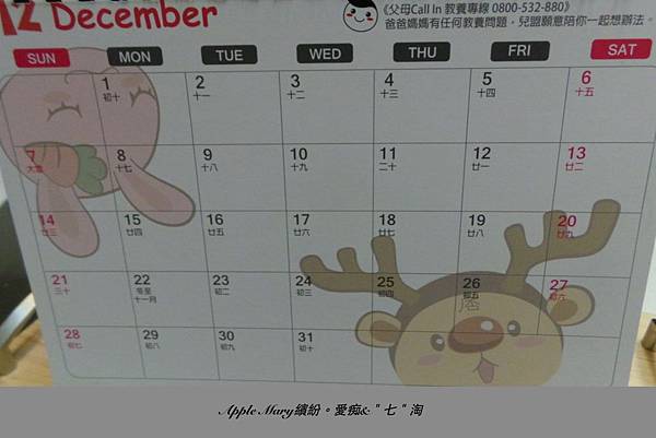 在桌年曆尚有貼心的父母教養專線