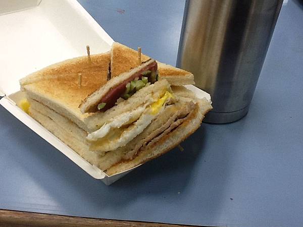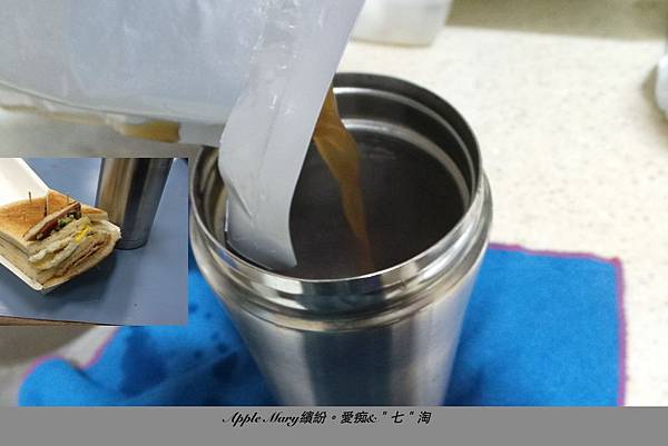 將龍脈養生湯倒入保溫瓶中,帶到公司與總匯三明治一起食用